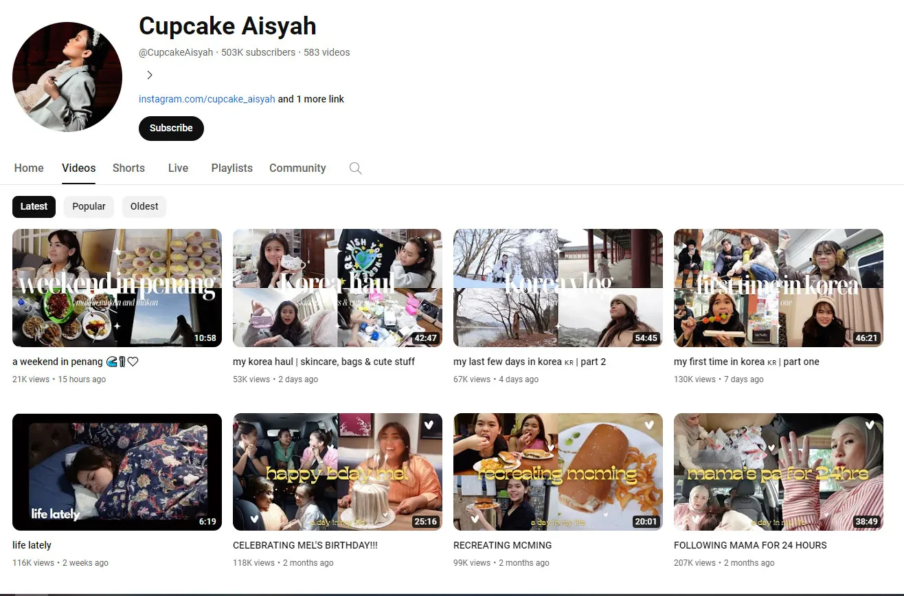 After a two month hiatus, Cupcake Aisyah posted her first video titled “Life Lately” where she was heard narrating a spoken word poem while showcasing a day in her life. She then started posting vlogs from her travels to Korea and, yesterday (Wednesday, 20th March), she posted her latest video which is a travel vlog of her time in Penang.