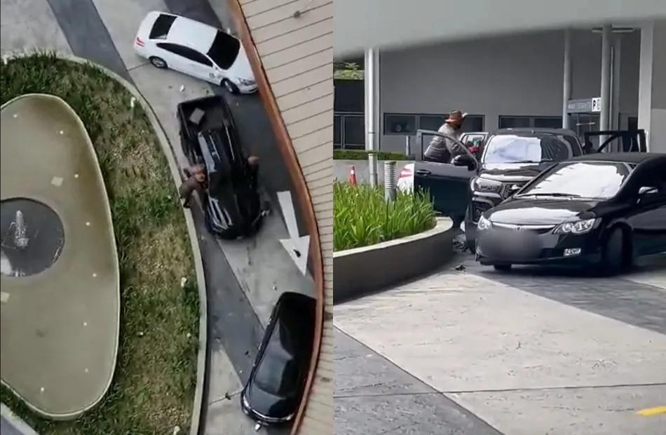 Twitter user @jllmisai posted a video of several men holding machetes and axes attempting to rob someone at Puteri Harbour. As seen in the video, the robbers had blocked the victim’s car with theirs to prevent him from escaping. The victim can be seen frantically moving the vehicle back and forth in an attempt to escape while the armed suspects tried to force their way in.