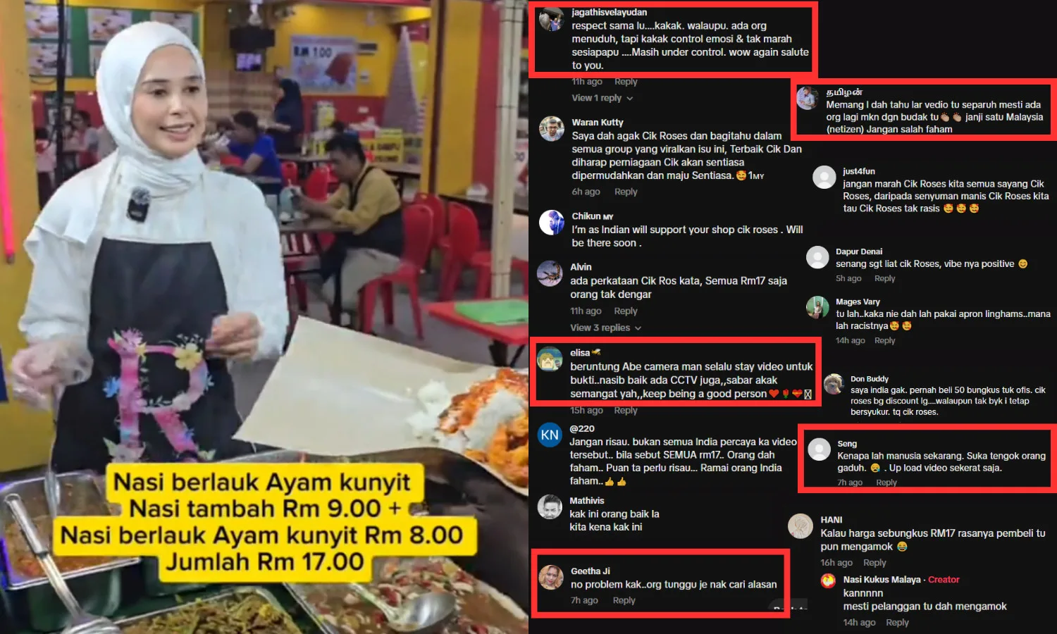 In an effort to set things right, Cik Roses later released a video where she explained the incident that happened. “The Indian customer actually came with a friend. His friend ordered rice with Ayam Kunyit, priced at RM8, and added rice, making it RM9,” she said. Meanwhile, the Indian guy ordered the same meal, but without the added rice, costing RM8, which resulted in RM17 for both meals. The alleged Indian customer even left a comment under the previous viral video to clear the confusion, stating that he paid for both his and his friend’s meals.