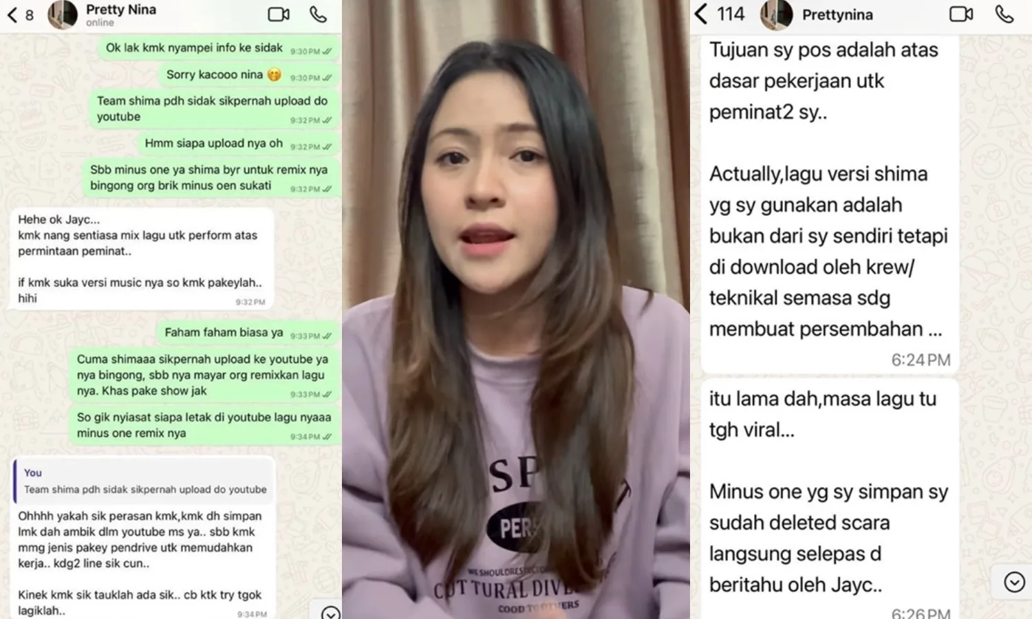 Pretty Nina initially denied the allegations saying that she downloaded the song from YouTube, however, after Shima proved that she was lying, the Sarawakian singer finally admitted that she took it from the technical crew of an unspecified event in which Baby Shima once attended to perform.