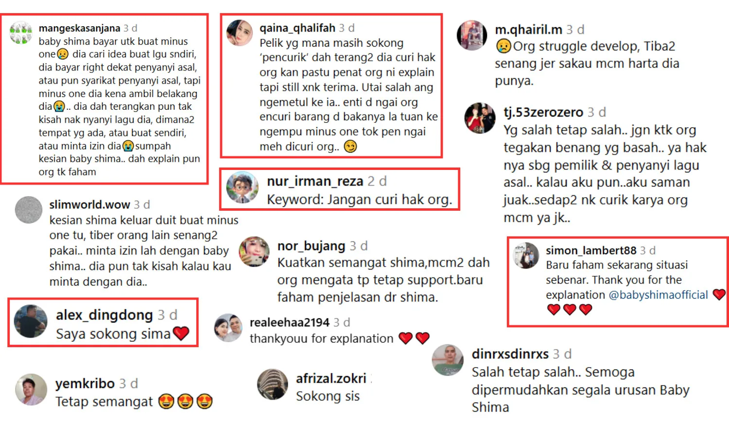 The Johor-born artist was outraged, but instead of losing her temper, she calmly discussed what the singer ought to have done. Nina firstly should’ve asked Shima whether she could obtain her permission and work something out. In the comment section, Shima received sympathy from netizens who noted the hardships the performer endured, only to have her work stolen.