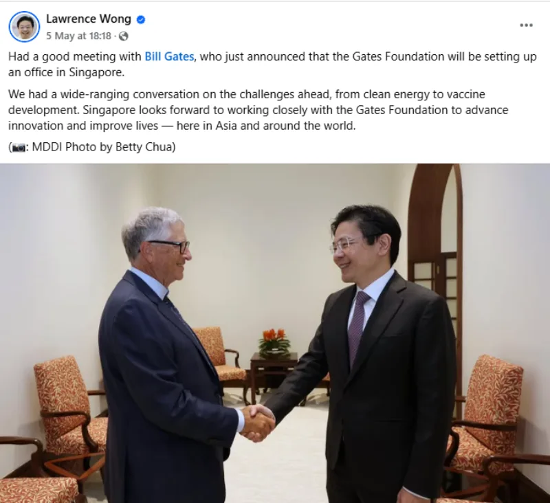 As for why Bill Gates was in the country, reports state that the Bill & Melinda Gates Foundation plans to establish an office in Singapore. According to The Straits Times, the new office will enable the foundation “to access the science, [and] to partner with the philanthropic community.” Singapore’s Prime Minister, Lawrence Wong, who met with the American philanthropist, wrote on Facebook: “Singapore looks forward to working closely with the Gates Foundation to advance innovation and improve lives — here in Asia and around the world.”