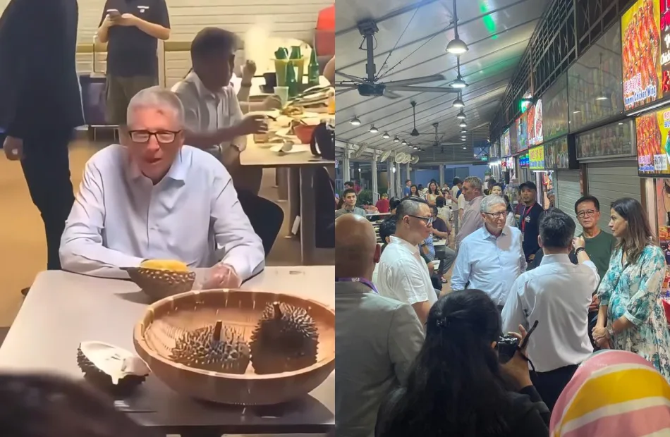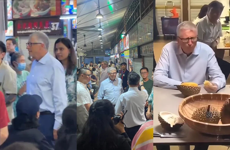 Of course, no trip to a Southeast Asian country would be complete without tasting the King of Fruits: durian. A video surfaced online showing the billionaire taking a whiff of the famously pungent fruit before having a bite, and based on his reaction, he appeared to enjoy it. Being the tech icon he is, the hawkers and other visitors instantly recognised him and took out their phones to capture the moment of the Microsoft co-founder touring the Newton Food Centre.