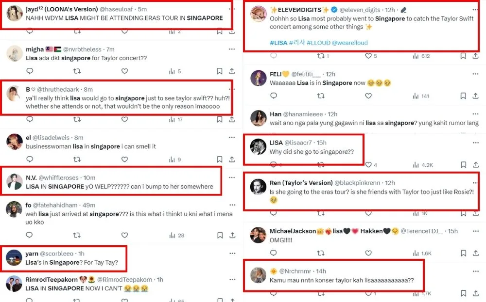 Lisa’s arrival in Singapore shocked many locals and prompted the question of why she was in the country. Many fans started to discuss the reason – but the most common theory was that Lisa might be attending Taylor’s concert. Many said that the “MONEY” singer is likely attending the show due to the timing of her arrival and the lack of announcements of any official event appearances in Singapore.