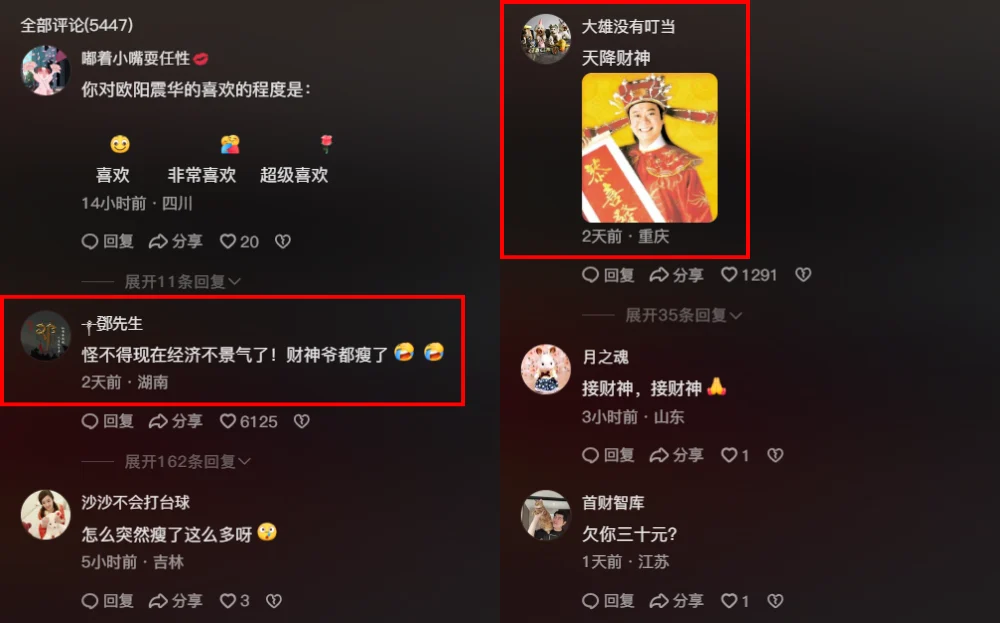 Despite the cheerful new year greeting, what caught netizens’ attention was Bobby’s increasingly thin physique. In the comments section, many expressed concern over his skinnier appearance, noting that his signature round face had disappeared. Some even shared photos of the star’s old “God of Wealth” cosplays, highlighting a stark contrast from his previously chubbier image.