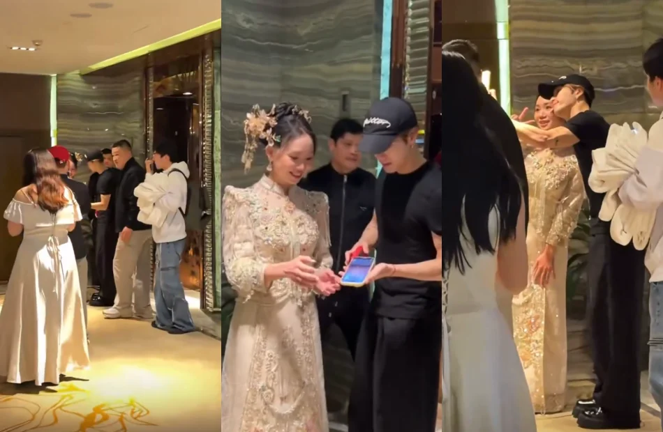 On Monday (29th December), a wedding was reportedly taking place at an undisclosed hotel when the bride and her bridesmaids unexpectedly encountered Jackson Wang and his team while heading towards the lifts. Recognising the singer, the bride politely asked if she could take a selfie with him. Jackson happily obliged, posing for the photo and reportedly congratulating her on her wedding, even wishing her a joyful marriage.