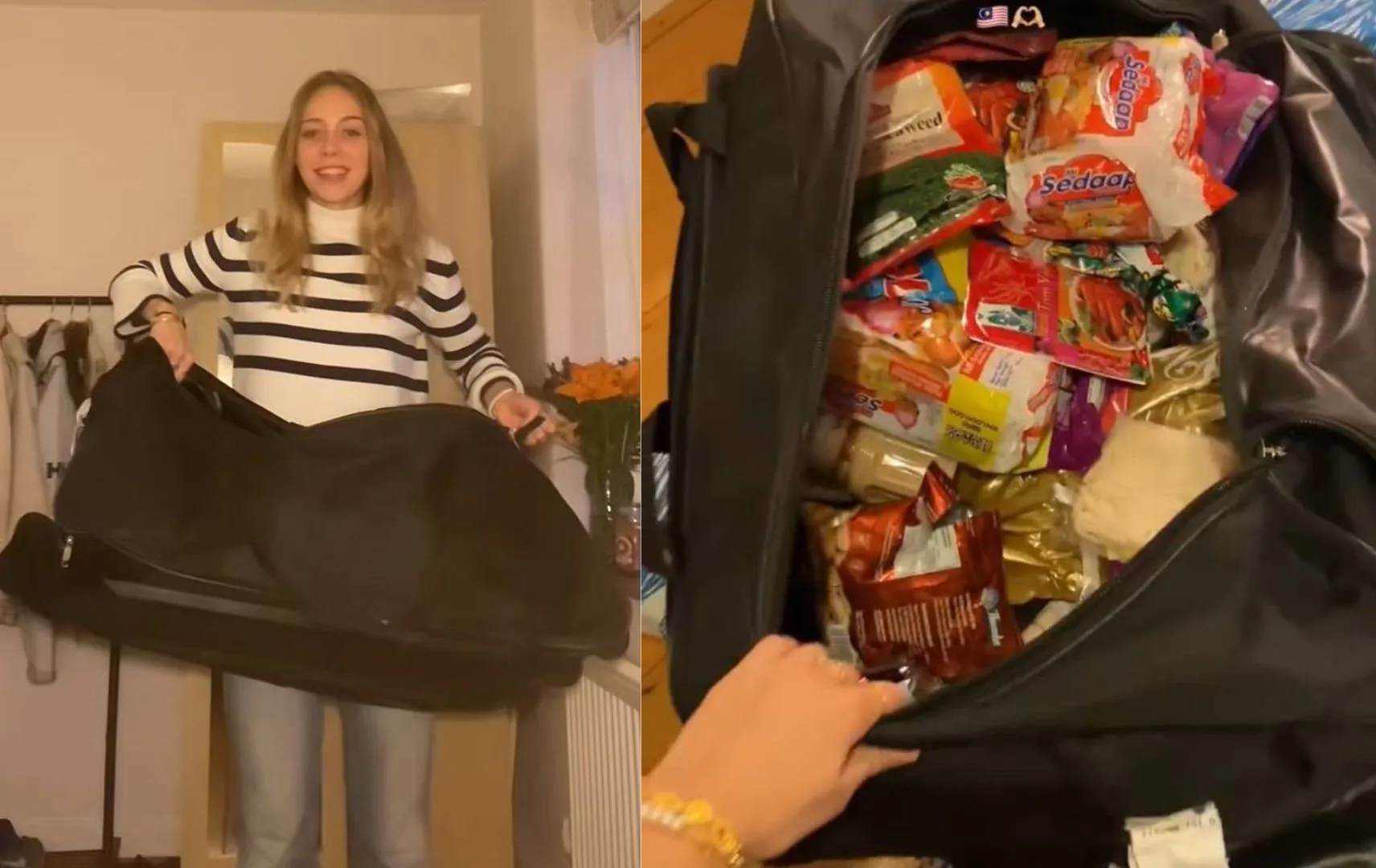 Leila, better known by her Tiktok username @lifeofleils, recently went viral after posting a video showcasing her impressive haul of Malaysian snacks. In the clip, she revealed that she had packed an entire bag filled with local treats, weighing a staggering 28kg in total. Her bag included a variety of beloved Malaysian treats, such as Milo, Mamee Monster, Fruit Plus, Mentos, and Lexus.