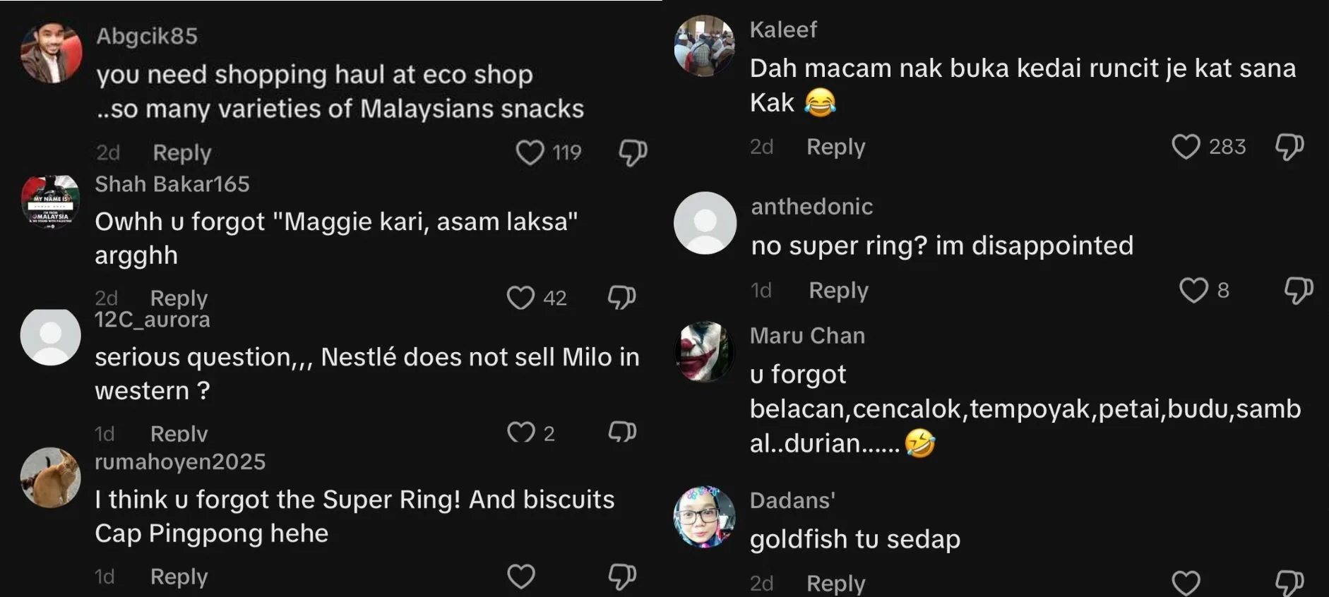 Another commenter playfully pointed out some must-have additions to her collection, writing, “You forgot Maggi Kari, Asam Laksa, and Super Ring!” Meanwhile, others expressed admiration for her love of Malaysian snacks, with one remarking, “Wow, you’ve already developed a Malaysian taste!”