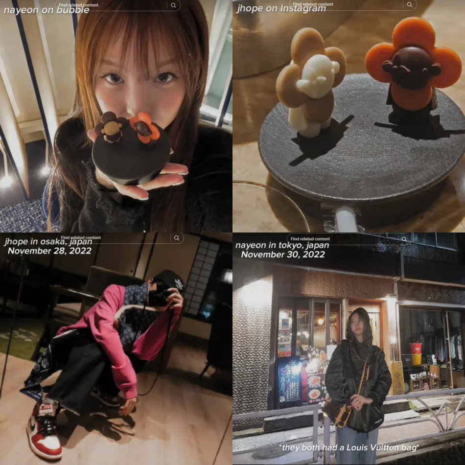 Recently, a netizen claimed to have compiled ‘evidence’ suggesting that J-Hope and Nayeon have been secretly an item for a few years now. According to screenshots of a TikTok post, the rumoured couple have been dating since 2022. The netizen reached this conclusion after noticing that the idols had been spotted at the same locations.