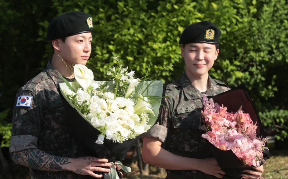 Jimin and Jungkook are BTS’ fifth and sixth members to fulfil their duties to their country. Yesterday (10th June, Tuesday), groupmates RM (알앰) and V (뷔) greeted fans after completing their mandatory military service. Jin (진) and J-hope (제이홉) completed their service last year, leaving Suga (슈가) the last to wrap up his military duties. The rapper enlisted as a public service worker and will complete his military service on 21st June (Saturday).