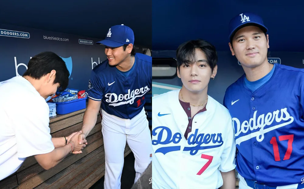 Besides throwing the ceremonial first pitch, V also met up with the LA Dodgers’ star player Shohei Ohtani (大谷 翔平) for a quick chat before the game. Photos and videos of their interaction quickly went viral across social media, with many gushing over the two’s visuals. Some fans even quipped that the meeting was surreal, noting now both V and Shohei Ohtani are renowned stars in their respective fields.