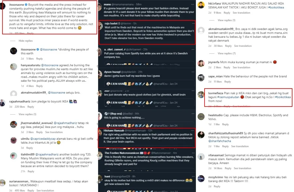 “Boycott H&M! Stop going to H&M! Stop going to IKEA! F IKEA! F THE MEATBALLS” he screamed while angrily tearing the shirt apart. The 34-year-old’s post garnered a lot of attention from Malaysians but not everyone agree with his approach to boycotting Swedish brands. While everyone agreed that the politician’s actions were wrong, some felt that boycotting the two companies is pointless as they had nothing to do with the incident.