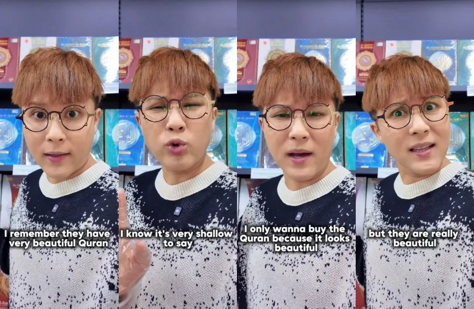 Recently, the influencer attracted attention when he visited Karangkraf to buy himself a copy of the Quran. He mentioned that he had been to the store before and noticed many beautiful Qurans being sold. “I remember that they (Karangkraf bookstore) had very beautiful Qurans and today, I’m here again. Although it might seem a bit shallow to say I want to buy a Quran because it looks beautiful, it’s indeed beautiful,” said Ceddy.