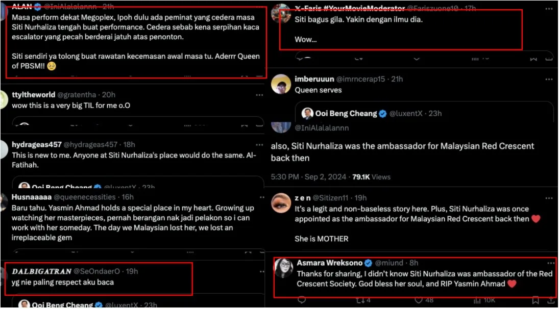 The story blew up on social media with many praising the “Bukan Cinta Biasa” singer for her heroic deeds. Many brought up the fact that Siti Nurhaliza was once appointed as the ambassador for the Malaysian Red Crescent Society and has provided first-aid assistance to those in need herself. One time during a show in 2000, the icon paused her performance to help an injured fan in the audience.