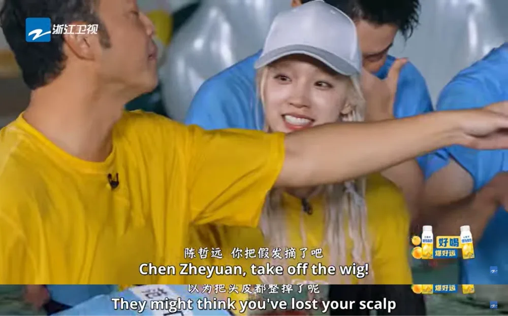 As the show progressed, the 28-year-old had to receive punishment for losing a game, where the opposing team would splash buckets of water onto his face. Before proceeding with the splashing, a cast member suggested Chen Zheyuan take off his wig to avoid embarrassment. They even joked that the audience may get a shock if they see the wig fly off, saying, “They might think you’ve lost your scalp!”.