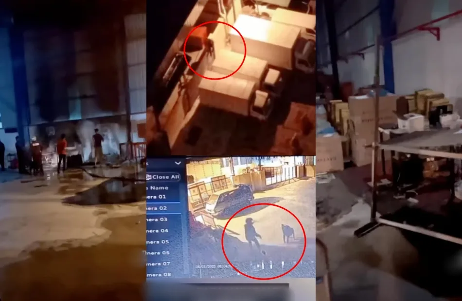 Apparently, the cause of the fire was not due to an electrical short-circuit but a person. In the same video, the business owner showed a video captured by a civilian as well as CCTV footage of a man climbing through the gates of the warehouse’s loading bay. The man threw (what appears to be) some sort of explosives to the items in the warehouse before dashing away.