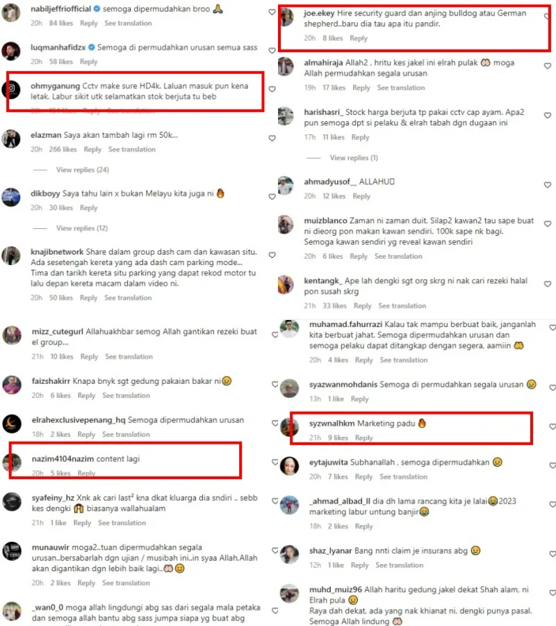 Netizens commented on the video with many recommending Sass invest in improving warehouse security. Others sympathised with the Elrah Exclusive owner while a few accused this is all just part of a marketing strategy. At the time of writing, there has been no official statement by the authorities on the progress of their investigation.