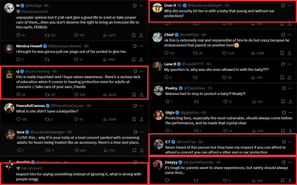 The clip of the exchange quickly went viral, spreading far beyond Maluma’s fan base. Many netizens echoed his concerns, highlighting a growing issue: while parents deserve time to unwind and enjoy themselves, that freedom shouldn’t come at the expense of a child’s safety. Whether it’s bringing them to a concert without ear protection to putting them onto the stage, no moment of entertainment is worth compromising a child’s well-being.