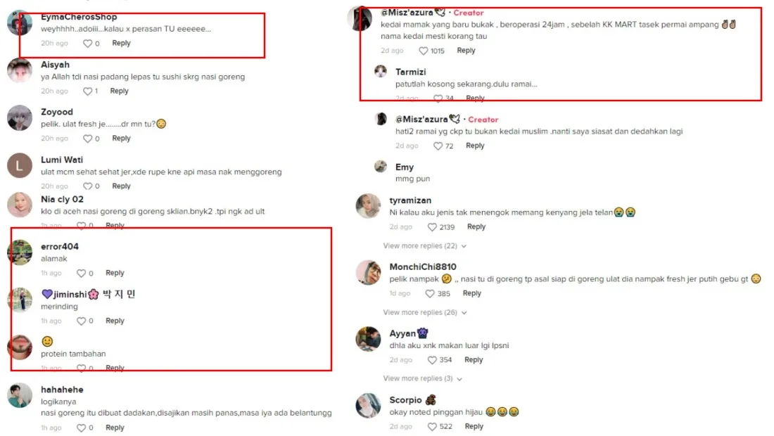 A TikTok user who goes by @miszzazura recently posted a video of her fried rice meal that she purchased at an eatery in Ampang, Kuala Lumpur. She noticed something was moving in her food and upon closer inspection, she discovered that they were maggots wriggling around in the rice.