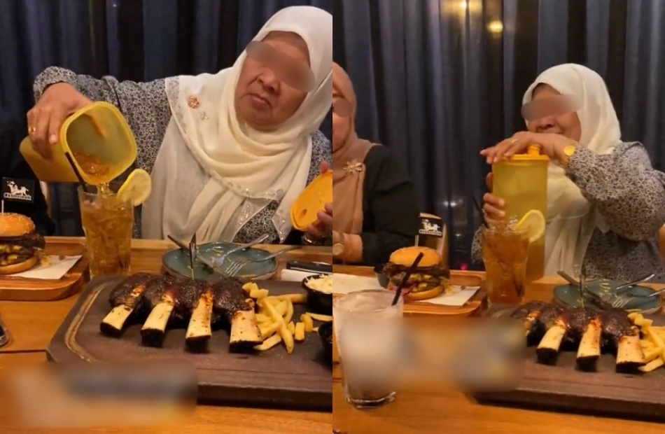 Over the weekend, a netizen who goes Paan Zery on TikTok posted a video on his channel that showed him at a nice steak restaurant with his family. What he probably didn’t expect was his mother bringing something along with her to add to the meal instead of simply ordering it.