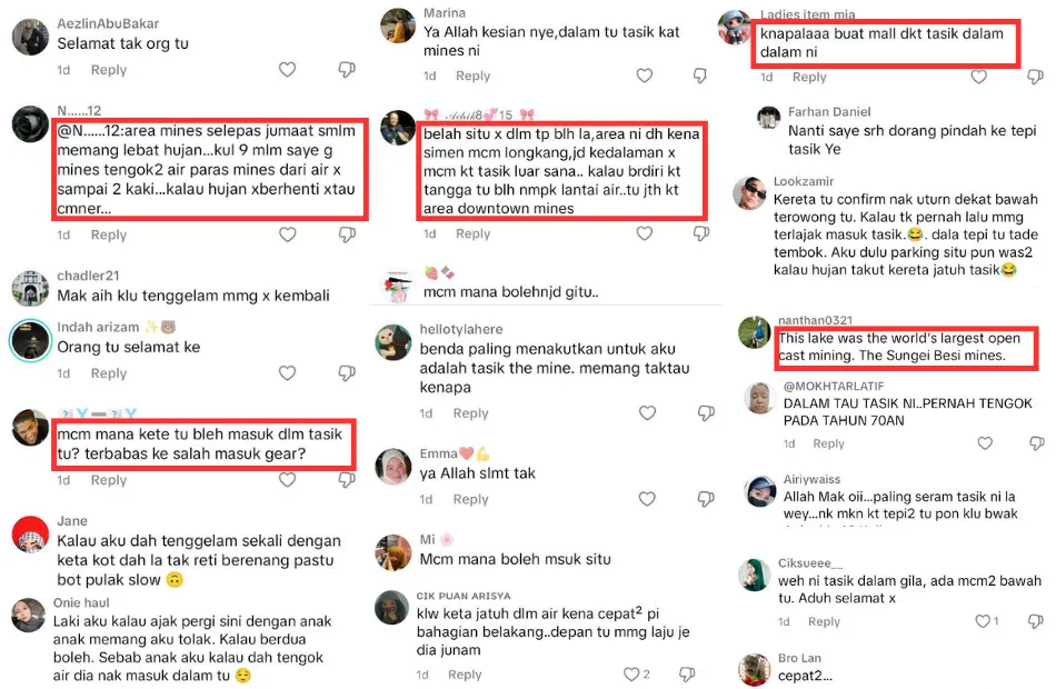 The TikTok video of the event sparked widespread concern, with many commenting on the lake’s depth. Several users mentioned that the lake, previously a tin mine, is reputed to be one of the deepest in the world, as the lake has depths ranging between 610 meters and 700 meters. A user criticised the decision to build a shopping mall near such a hazardous site, suggesting it increased the risk of accidents. Others questioned how the accident occurred, while some shared similar experiences involving the lake.
