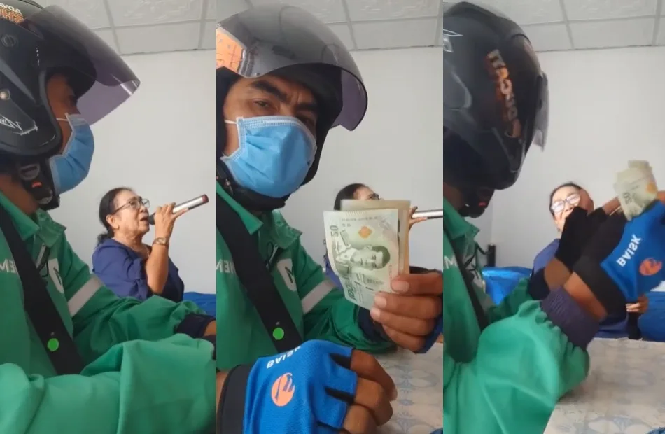 A video posted on Facebook and TikTok by a food delivery rider is currently going viral. The delivery rider from Thailand received an unusual request from a customer who asked him to hear her sing. In the video, the rider signalled that he has listened to 3 songs so far, while showing the elderly woman belting out in the background.