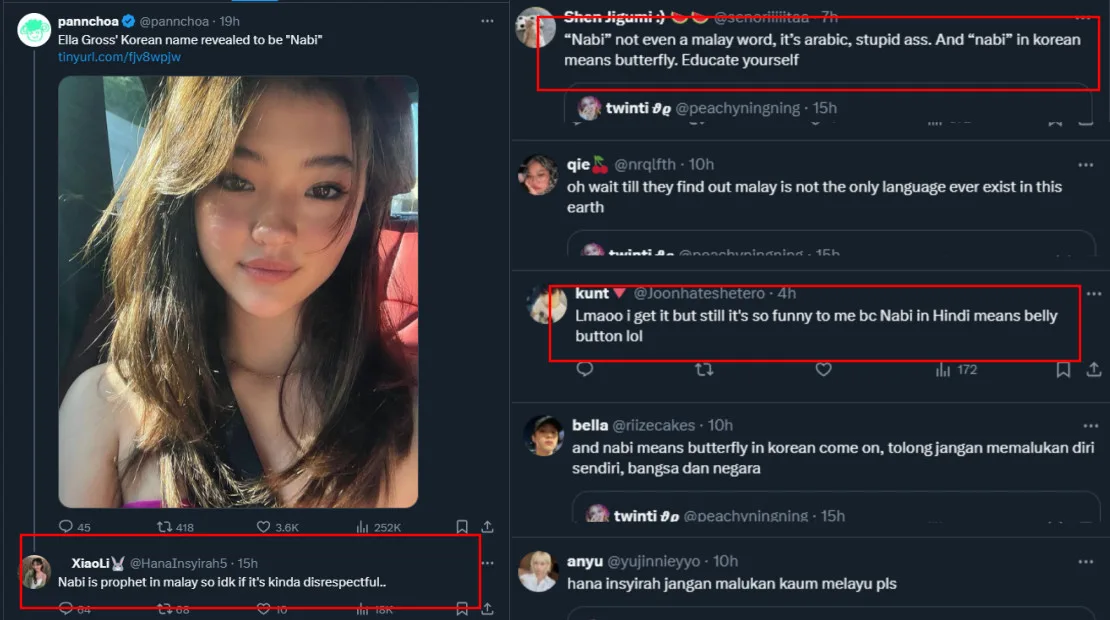 Many educated the user by giving examples of the word’s meaning in another language – Nabi means ‘Butterfly’ in Korean and ‘Navel’ in Hindi. Others, including other Malaysians, pointed out that Nabi is actually an Arabic word, not Malay and urged the user to delete her post as it puts Malaysia in a bad light.