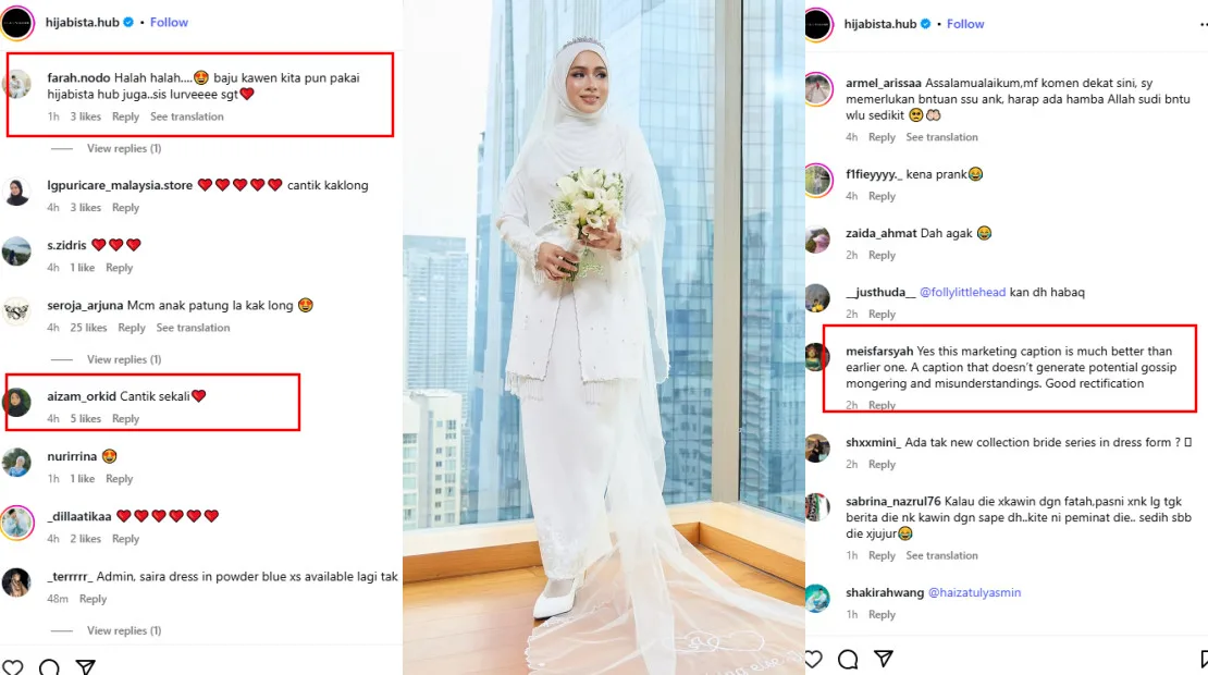 Rather than expressing disappointment, fans remarked on how beautiful Amira looked in the bridal attire, with many hoping to see her wear it again on her actual wedding day. Some also noted that the latest caption from the brand was an improvement on its earlier posts, as it helped dispel rumours that could otherwise have been used to slander the stars involved in the promotional campaign.