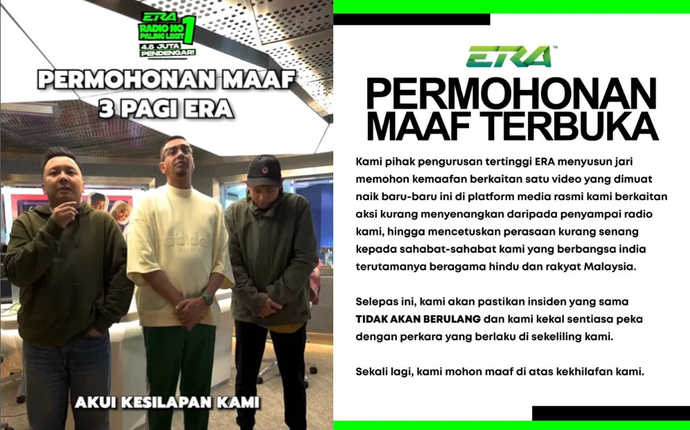 Era FM also posted a written apology, acknowledging the radio channel’s mistake. The comments section for the apology video and notice was closed off. However, the public continues to express disappointment towards the radio hosts for their insensitive actions. Some also noted that this isn’t the first time the Malay radio channel was called out for making fun of other races and religions.