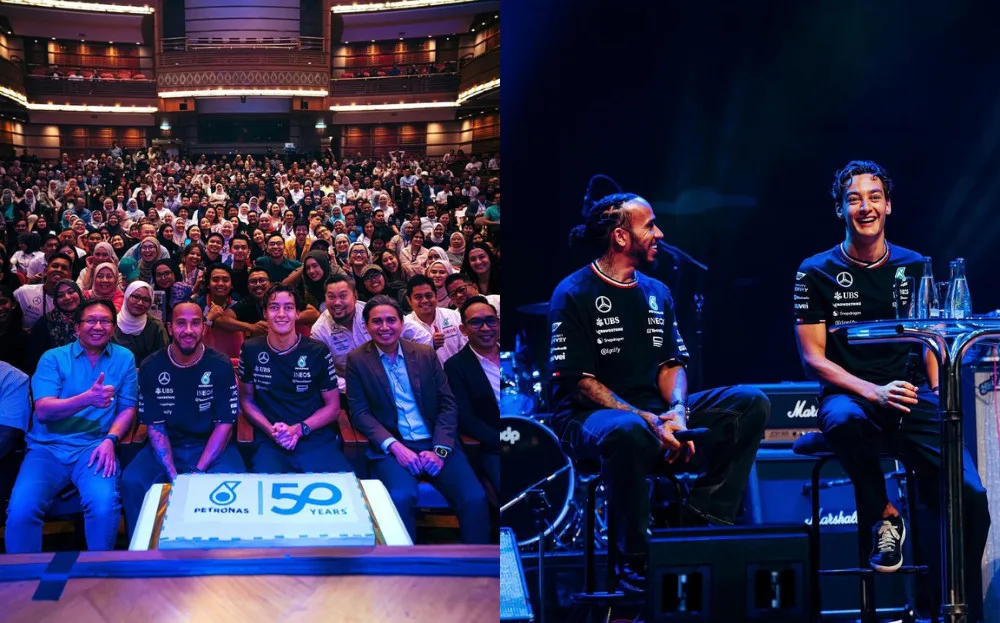 The two F1 drivers were recently in Kuala Lumpur for a private event hosted by Petronas to celebrate the company’s 50th anniversary. Mercedes’ official social media shared several photos from the gathering, which included Petronas staff members. According to videos, Lewis and George also took part in a sharing session where they answered questions from the audience members.