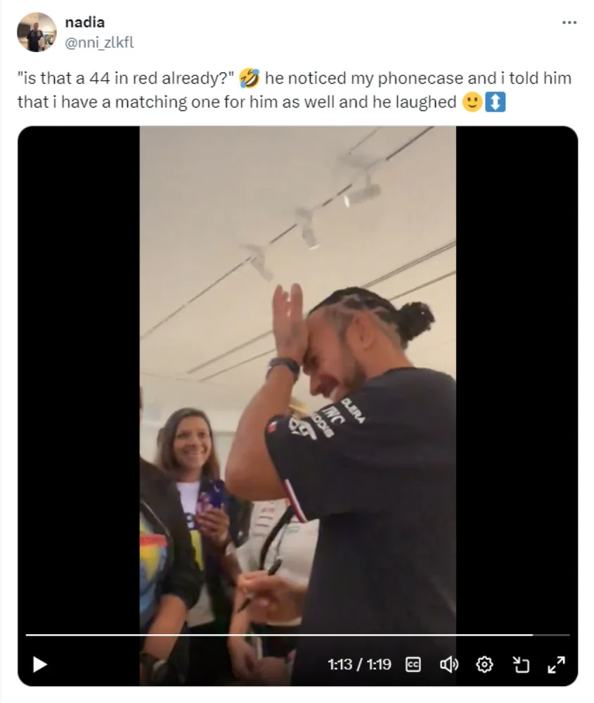 One fan named Nadia shared her interaction with the 39-year-old when she presented him with a bag of gifts. The fan also shared Lewis’ funny reaction when he noticed her custom phone case – his car number, 44, in Ferrari’s signature red colour. He also did a Q&A session and shared his upcoming projects, including the highly anticipated “F1” film.
