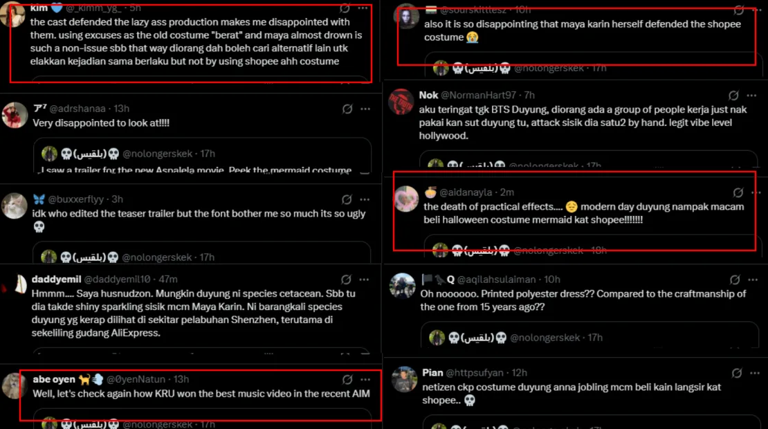 This disappointed many fans, who had expected improvements in the costumes and practical effects after 16 years. Some likened the new outfit to something purchased from Shopee, while others said it reminded them of the lightweight fabric used for curtains. Maya Karin addressed the backlash, explaining that the new costume was designed for practicality: it is lighter, allowing her to swim more freely, whereas the original was much heavier due to the scales.