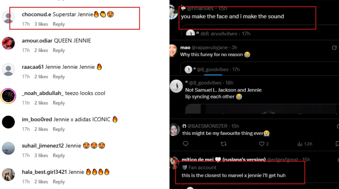 Some likened the viral clip to the “you make a face, I make a sound” game that’s been trending on TikTok. Others joked that this might be the closest we’ll get to a Jennie and Marvel collaboration, given that one of Samuel L. Jackson’s most iconic roles is Director Nick Fury in the Marvel Cinematic Universe. Whatever the comments are, most appear to be positive, and fans love the new campaign, knowing the K-pop idol is part of it.