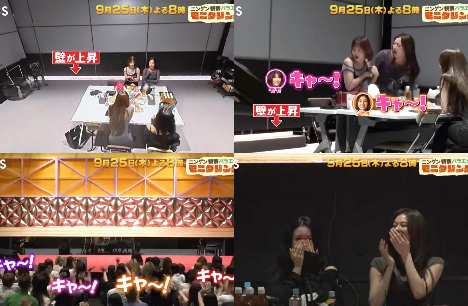 Earlier this week, five members of TWICE, Momo, Jihyo, Sana, Nayeon and Chaeyoung, were scheduled to appear on the “Ningen Kansatsu Variety Monitoring” show. As seen in the preview video of the upcoming episode, the girls were placed in what appeared to be a holding room, where they were seen resting and sampling the snacks on the table.