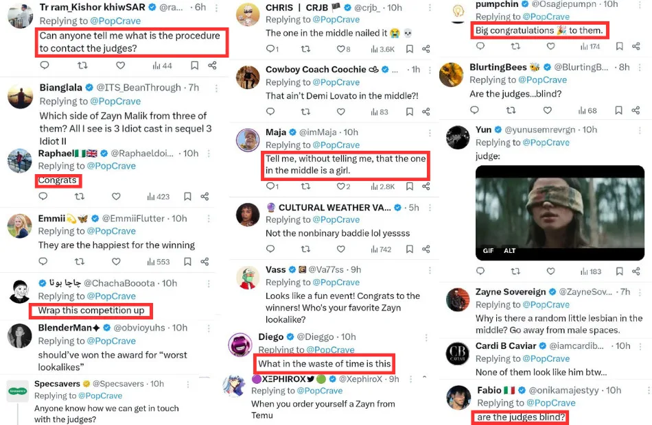 Despite the festive atmosphere, many commenters disagreed with the results of the competition. Some pointed out that none of the winners looked like Zayn, questioning whether the judges had made the right decision. One commenter noted that the middle contestant was a woman, which left fans baffled. While some expressed disappointment, others congratulated and supported the winners.