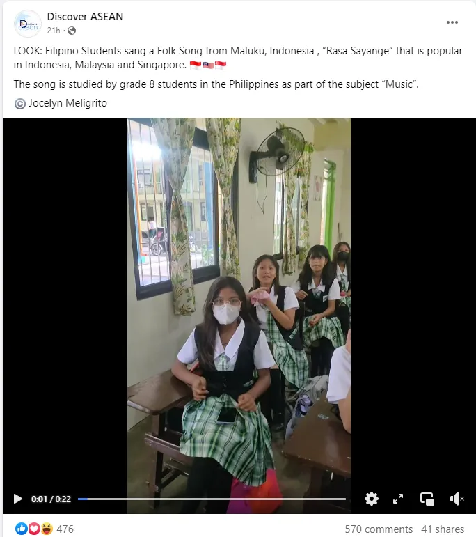 Recently, the Facebook page Discover ASEAN shared a video where a class of Filipino students were singing “Rasa Sayang”. In the viral video, the students were singing the song in near-perfect Malay. According to the video’s caption, the students are in Grade 8 (12 to 14 years old), studying the song as part of their school’s Music subject.