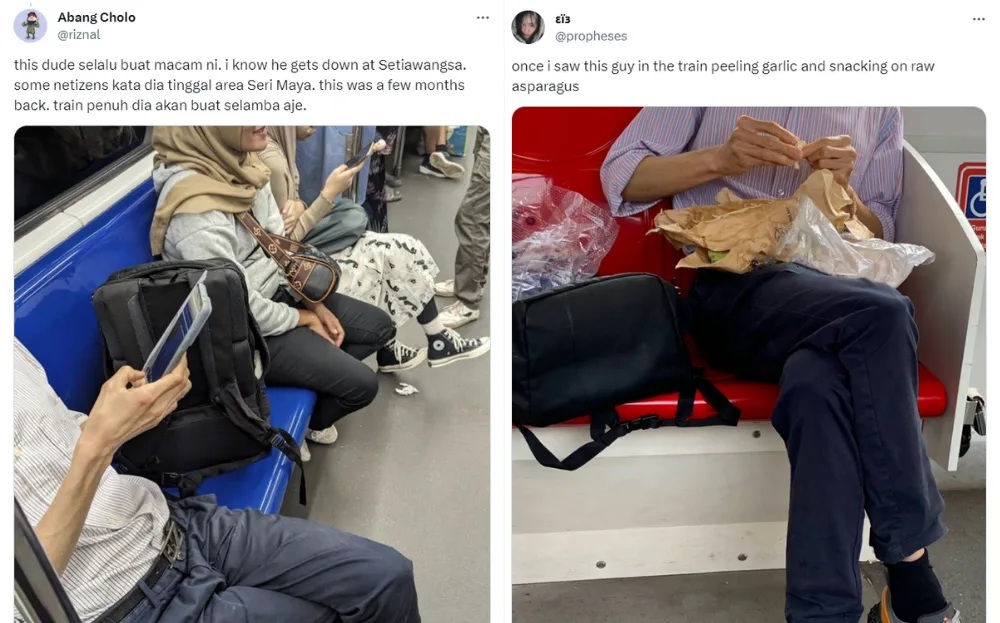 Another user shared that the same man had once peeled garlic while on the train and was snacking on raw asparagus at the same time. Surprisingly, snacking is the least the man does as another netizen shared that the man would even dine on a whole meal while on the train. In the photo shared, the man is seen with several food containers and hogging three seats to accommodate him, his bag and the food.