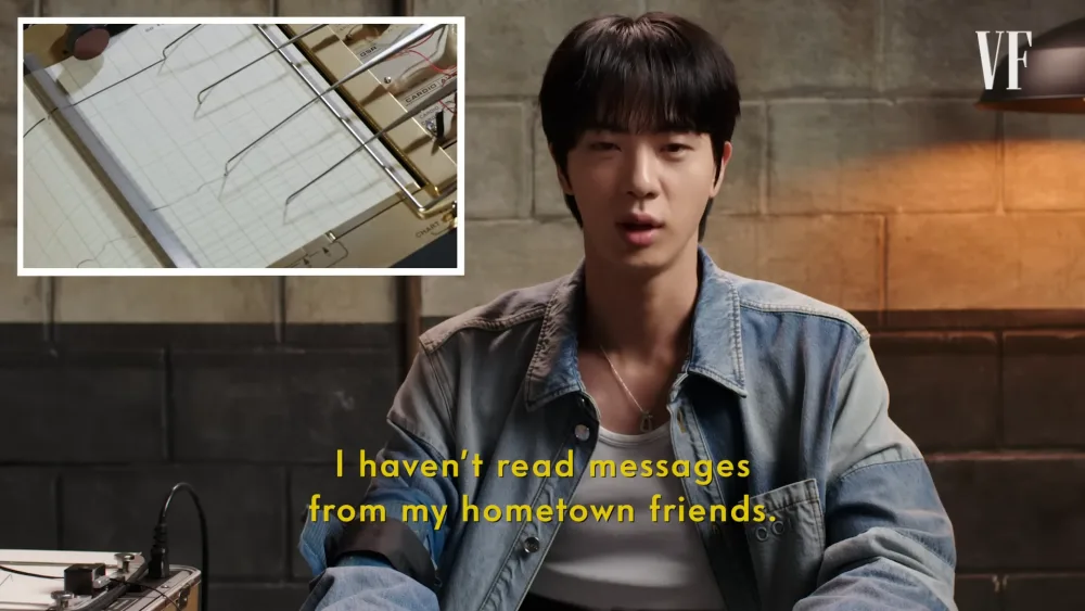 As the segment was filmed some time ago, the interviewer asked Jin which of his BTS bandmates, who were still completing their military service at the time, he missed the most. Initially, he replied that he missed all of them, but when the machine detected deception, he admitted he missed the maknae, Jungkook, the most.