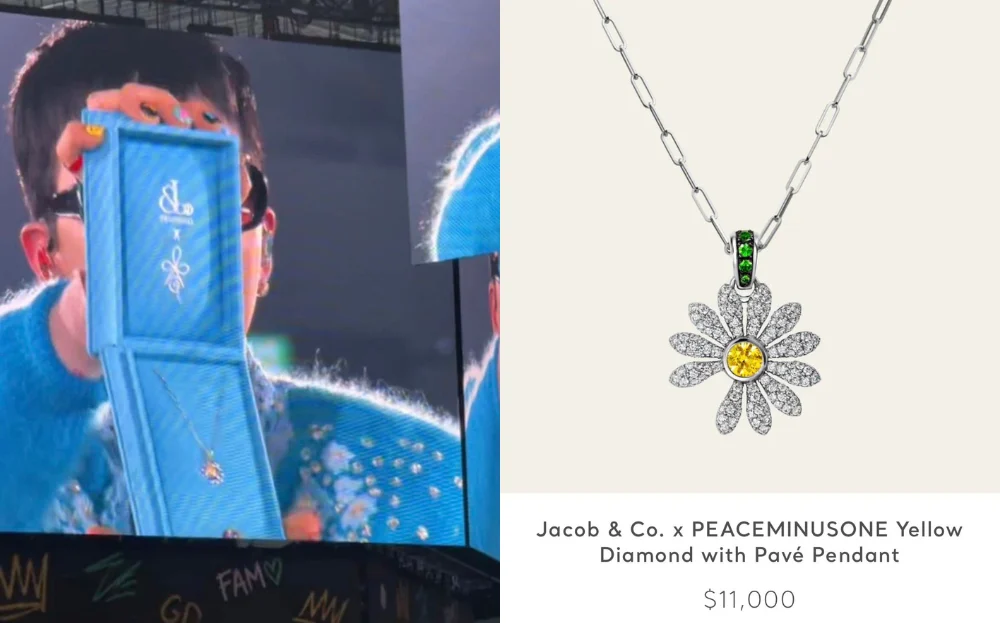According to reports, one of the items that G-Dragon gave away was the diamond necklace released in collaboration with jewellery brand Jacob & Co. The necklace is worth USD11,000 each (approximately RM43,362) and features 18k white gold, white diamonds, tsavorites and a yellow diamond. The lucky FAM who won the necklace was a soon-to-be bride with a handwritten sign that read, “Jiyong oppa, I’m getting married soon. Please give me a gift.”