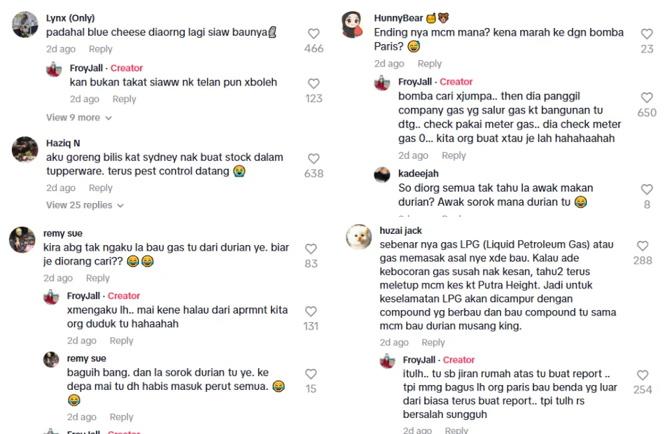 “So sorry to our neighbours,” read the subtitles in the video. The post instantly went viral with netizens, mostly Malaysians, being amused by the situation. Many thought the incident was hilarious, comparing the French blue cheese to have a much worse smell. Others were curious if the couple had eventually admitted to causing the distress.