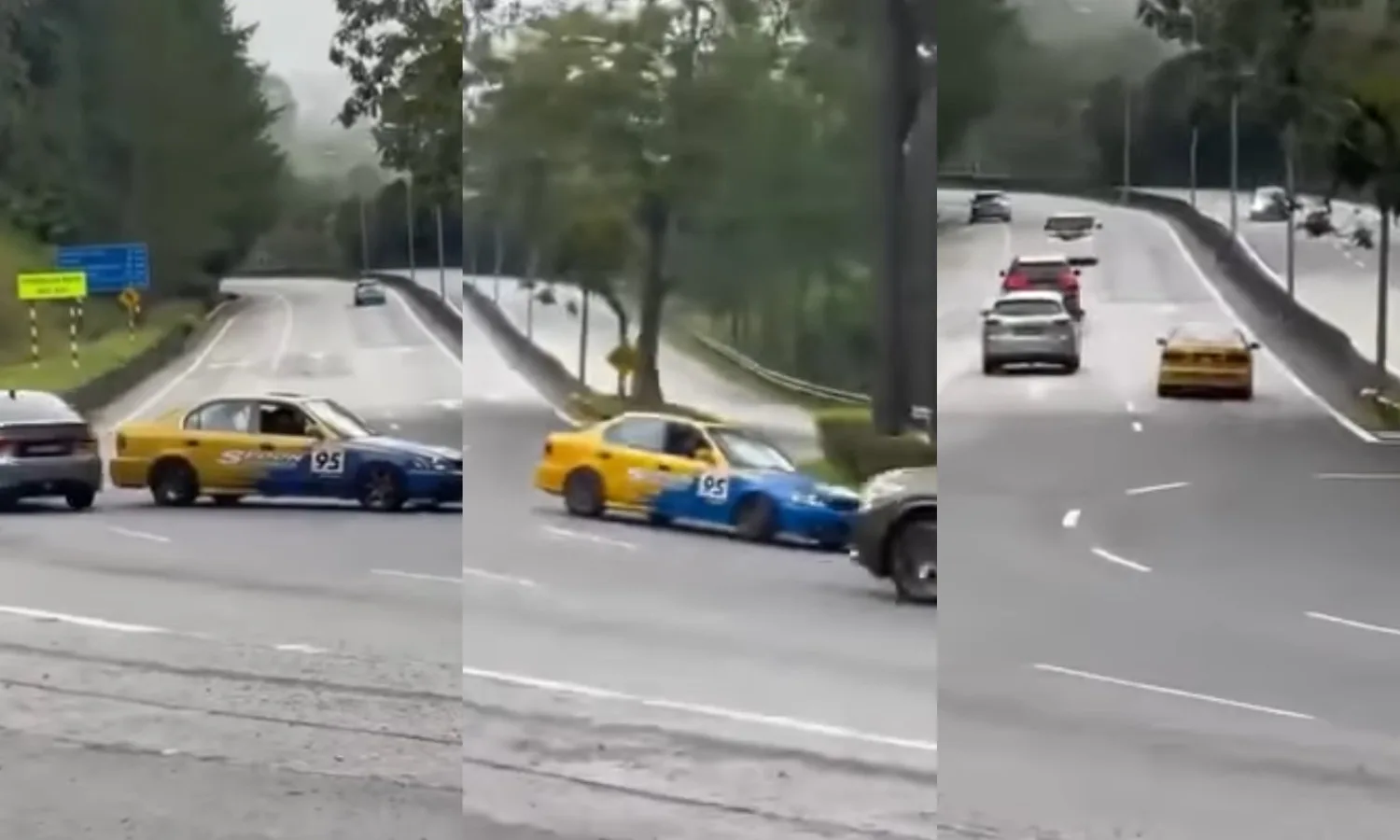 The incident took place in an area at Genting Highlands, Pahang, a known location for car enthusiasts to test drive their vehicle’s abilities. At the beginning of the video, the Honda Civic can be seen speeding downhill and attempting to drift at a roundabout. After failing the drift and losing control of the car, the driver stopped in the middle of the road, blocking traffic. Thankfully, one oncoming Honda City managed to avoid the Civic and drove away smoothly, narrowly escape a collision.