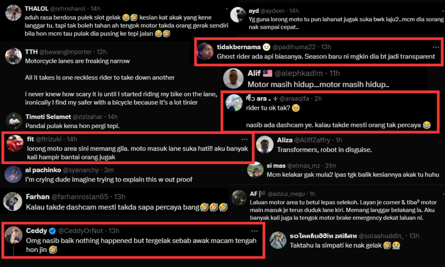 Most netizens commenting on the post were amused by the bizarre incident, with some even comparing it to the iconic 2007 film “Ghost Rider.” Even influencer Ceddy Ang found it humorous that the driver was “honking at a jinn” before learning the true story. Others expressed concern and sympathy for the victim involved. Additionally, some voiced frustration over how certain motorcyclists tend to tailgate in the motorcycle lane, contributing to dangerous situations.