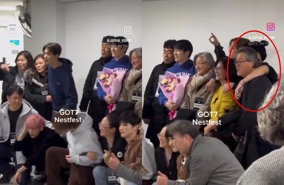 As seen in the screenshots above, the boys of GOT7 were getting ready to pose for a photo with their family members backstage after the concert. Many were particularly surprised when they saw Jackson Wang joining the session, especially since he was standing right next to and embraced Mark Tuan (마크투안/段宜恩)’s father, Raymond. This was surprising because, according to fans, Raymond had previously made remarks about the other GOT7 members, particularly Jackson.