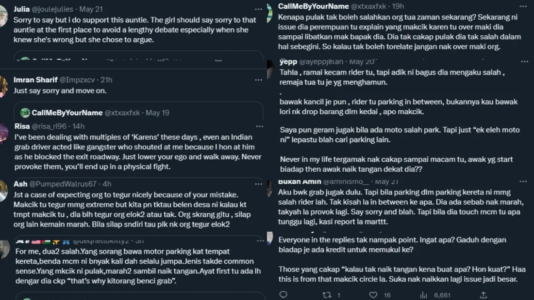 The original TikTok post went viral all over social media where netizens’ reactions have been mixed. Many suggested that the rider should’ve just apologised for the incident instead of provoking the auntie more while others defended the Grab employee as she admitted her mistakes and that there was no need for the Kancil driver to get violent over the matter.