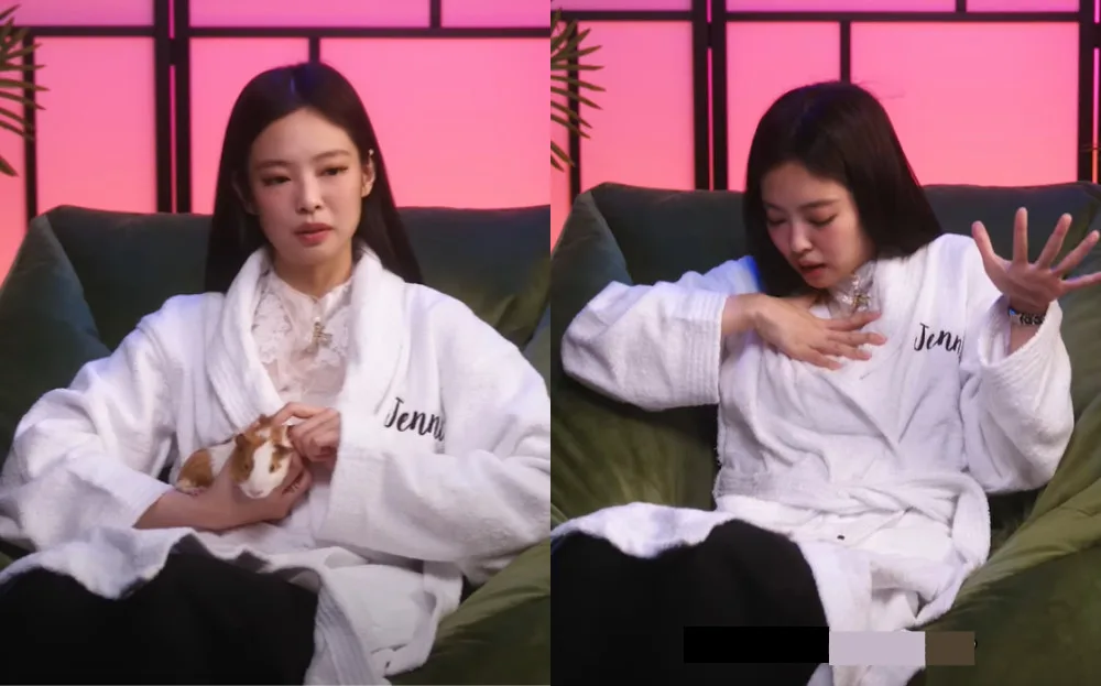 However, one moment in the interview had many fans cracking up. Midway through the interview, Jennie noticed that the guinea pig had pooped on her – specifically her white bathrobe.