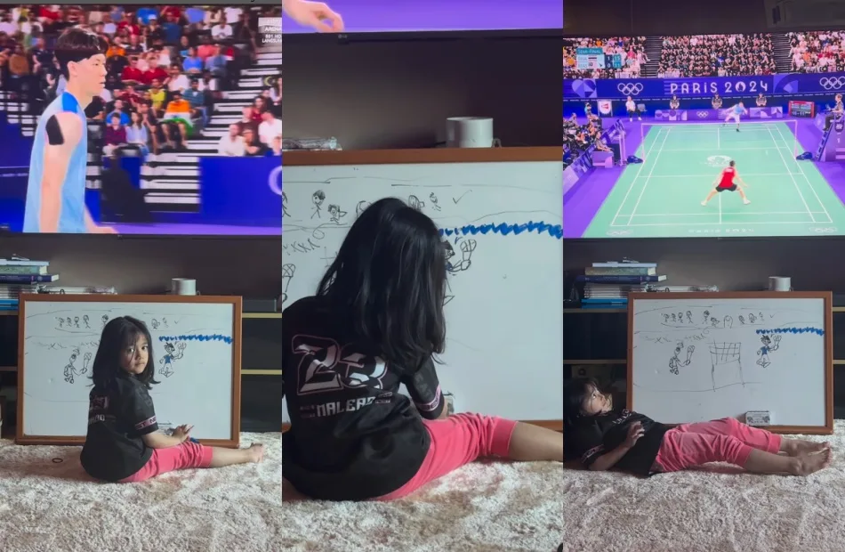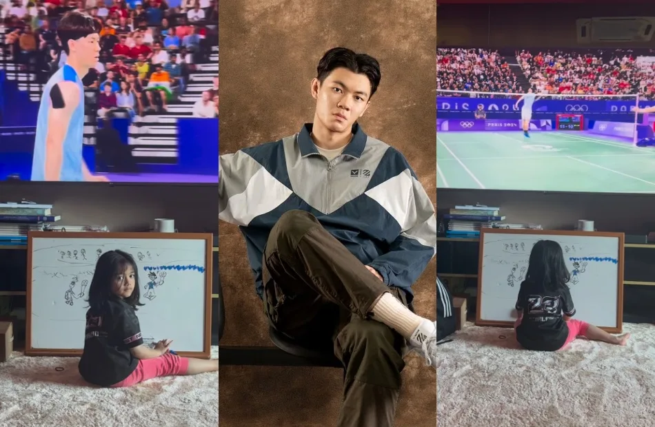 Lee Zii Jia is currently competing at the Paris 2024 Olympics where he had a match against his opponent Thailand’s World champion Kunlavut Vitidsarn yesterday at the Adidas Arena in Port de la Chapelle. Unfortunately, the 26-year-old lost 14-21, 15-21 to the Thai player during the intense tournament. As seen in the screenshots above, the moment was witnessed by Hairul and his daughter, who was drawing what she saw on the TV screen.