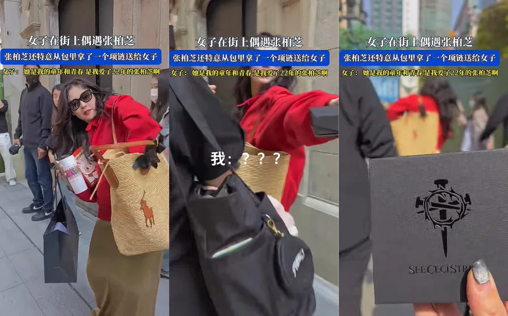 @hypemsia After casually gifting a fan a branded watch, HK actress CeciliaCheung 張柏芝 nonchalantly gave a brand new necklace to a fan on the street. Watch: