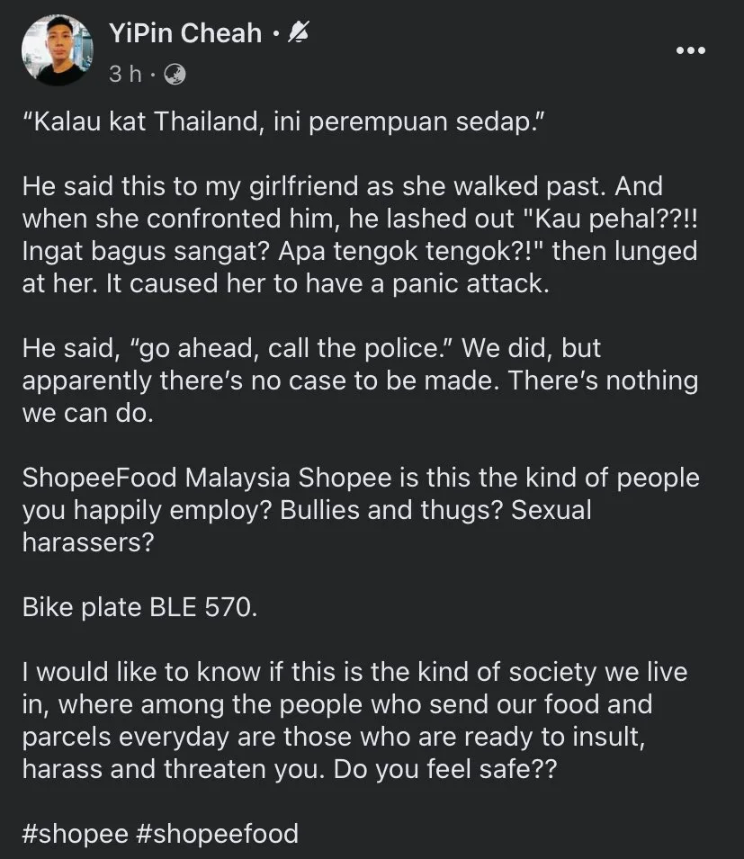 At the time of writing, YiPin Cheah has yet to elaborate on why a case cannot be made against the rider after calling the police. There is currently no official statement by Shopee Malaysia regarding the employee after the video went viral.