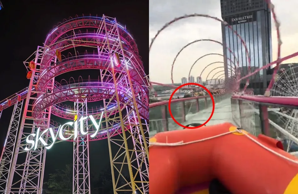 Recently, a TikTok user who goes by @/ash_naz912 posted a video on his channel to share his experience of riding the SkyCity Tower slide. Everything appeared normal as the user travelled down the ride, but at one point during the video, netizens noticed a visible line on one of the glass panels on the left side of the slide, with many expressing concerns about whether it was cracked or shattered.