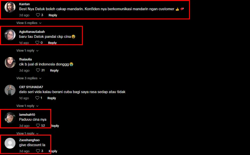 Many netizens have since reacted to the video, saying they were impressed to learn that Dato Seri Vida can speak Mandarin. Many also praised the public figure for using her language skills to attract customers and promote her products. However, some quipped that she should’ve given the customer a discount since she showed her business so much support.